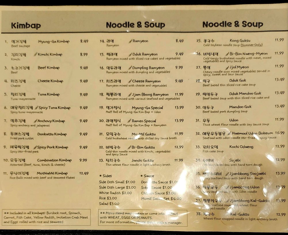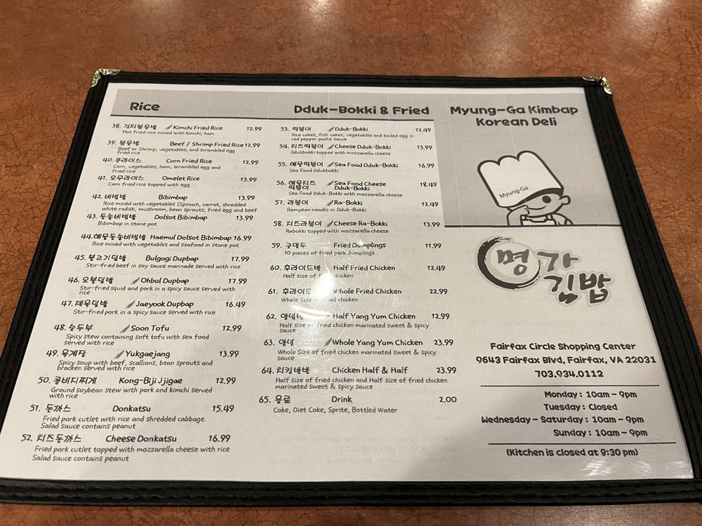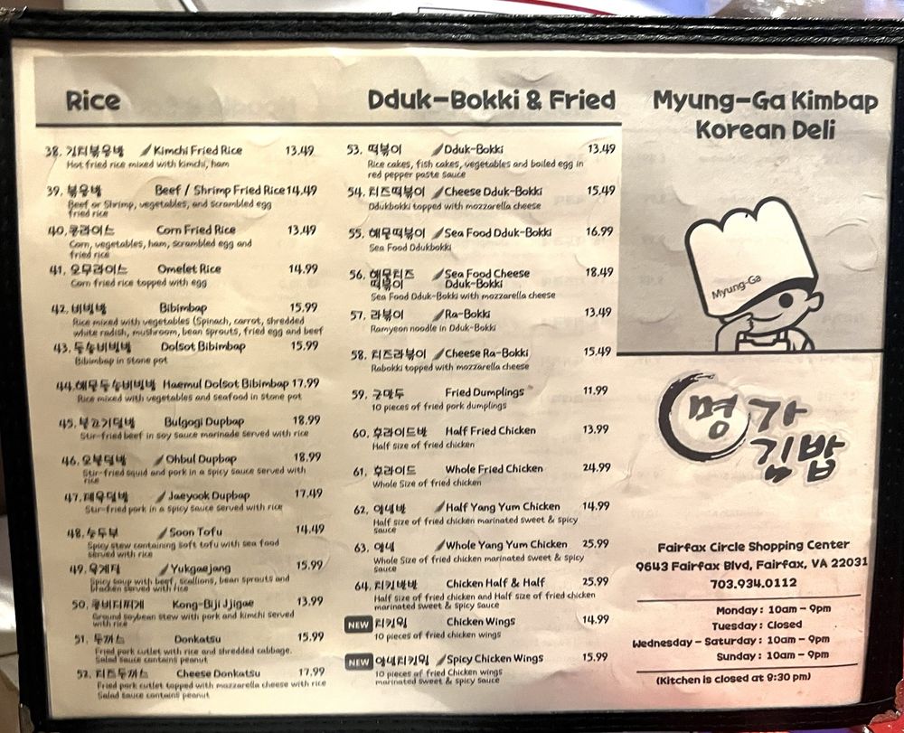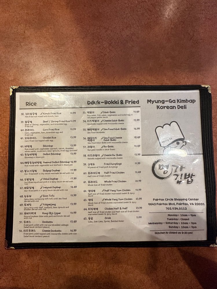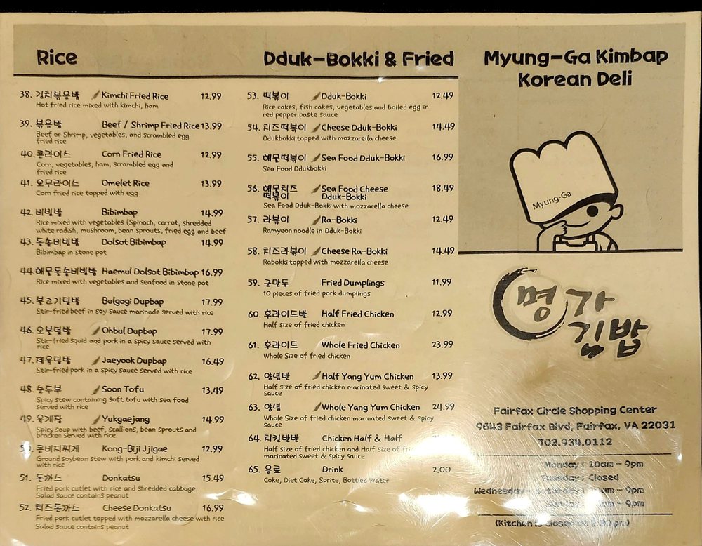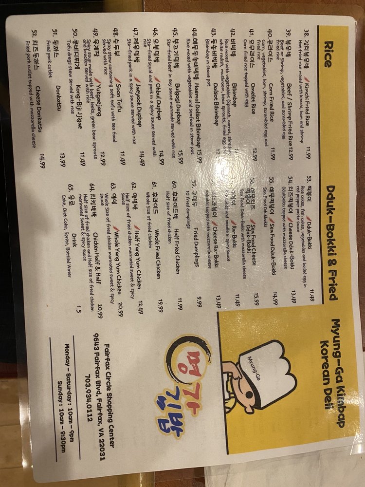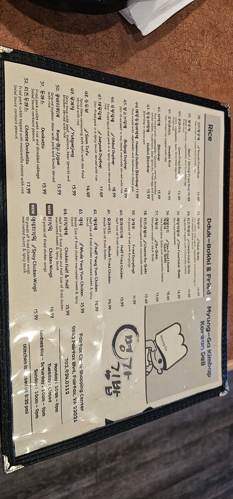 Welcome to Myung-Ga Kim Bap, a hidden gem located in Fairfax, VA. Specializing in authentic Korean cuisine with an Asian fusion twist, this casual eatery excels in delivering delightful dishes such as their renowned kimbap and flavorful ramen. Customers rave about the generous portions and the perfect balance of ingredients—no excessive rice here!